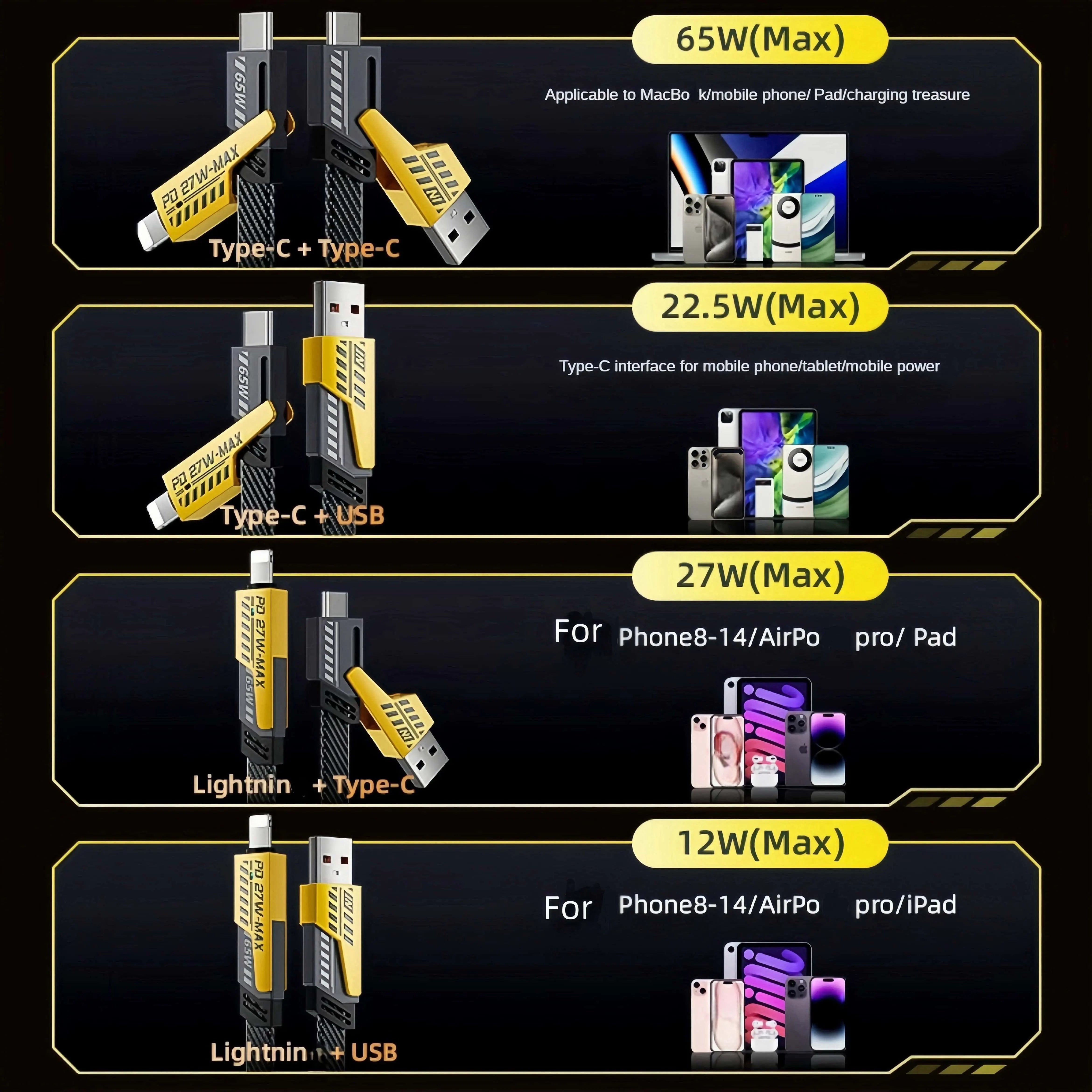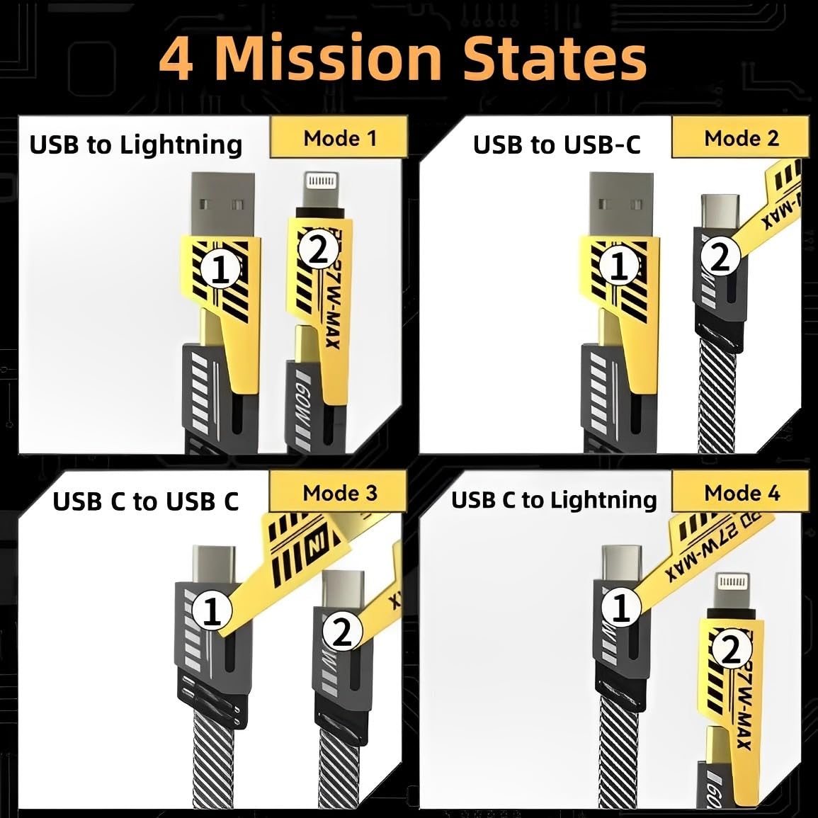 Universal 4‑in‑1 Fast Charging Cable with Dual Inputs (USB‑A/USB‑C) and Dual Outputs (USB‑C/Lightning)Power phones, tablets and laptops with one durable... Read more